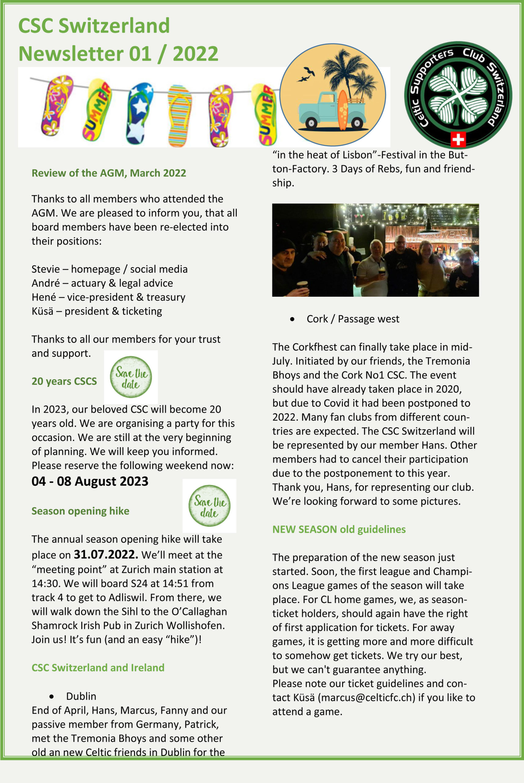 Dear members, Our newest edition of the newsletter is out! It’s number 30, since we refounded our beloved CSC Switzerland. Therefore president Marcus decided to rename the newsletter to «The Paradise Pages». We hope you like the name and the reading! Hail, Hail! Board of CSCS Switzerland
