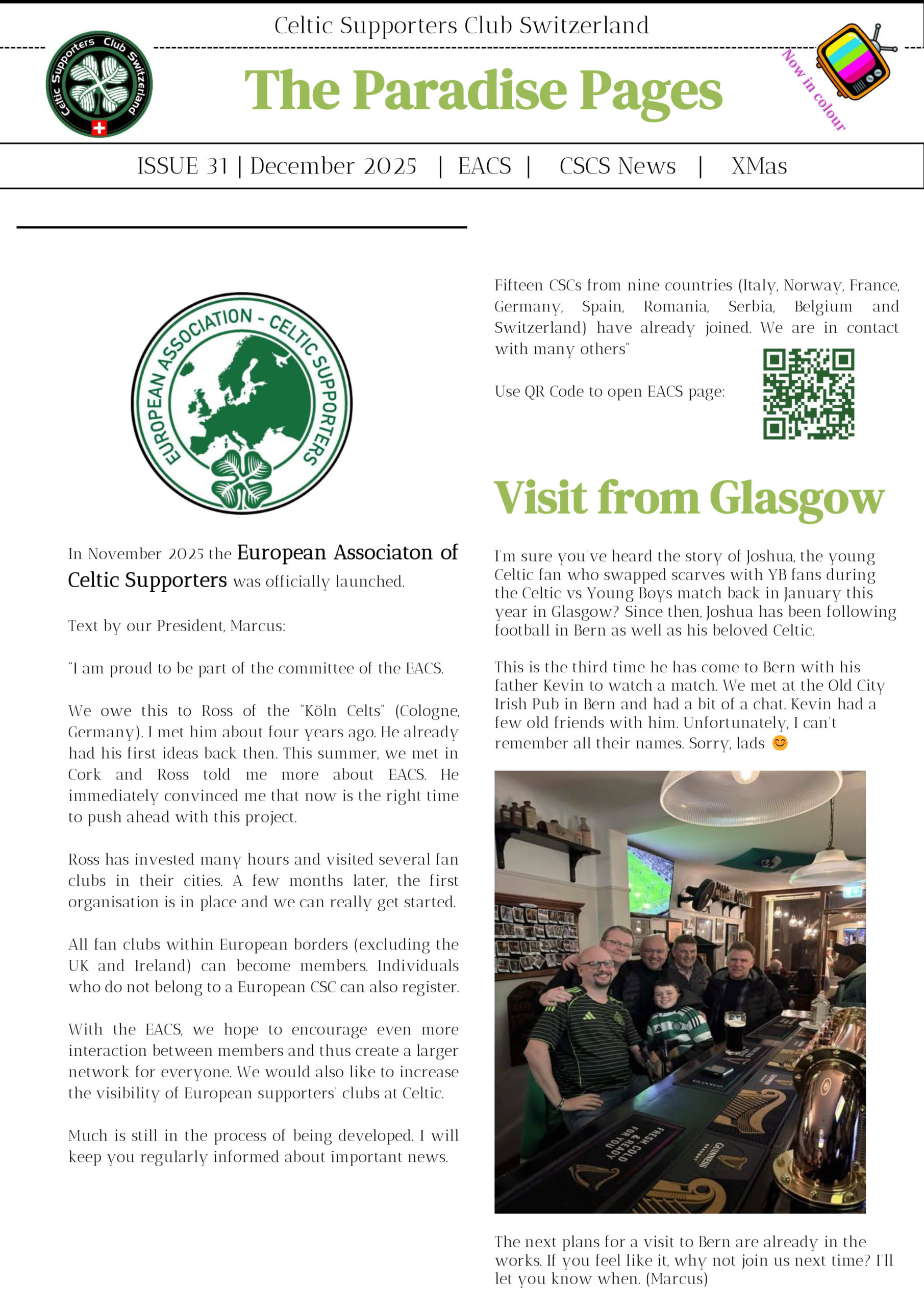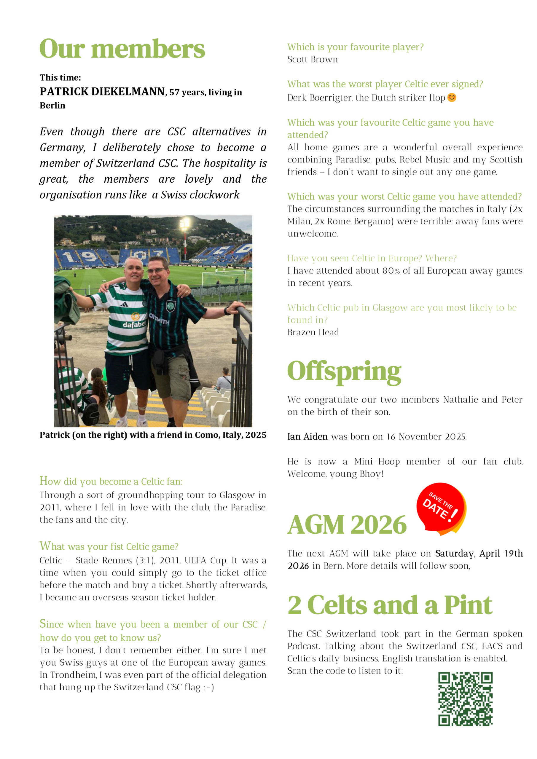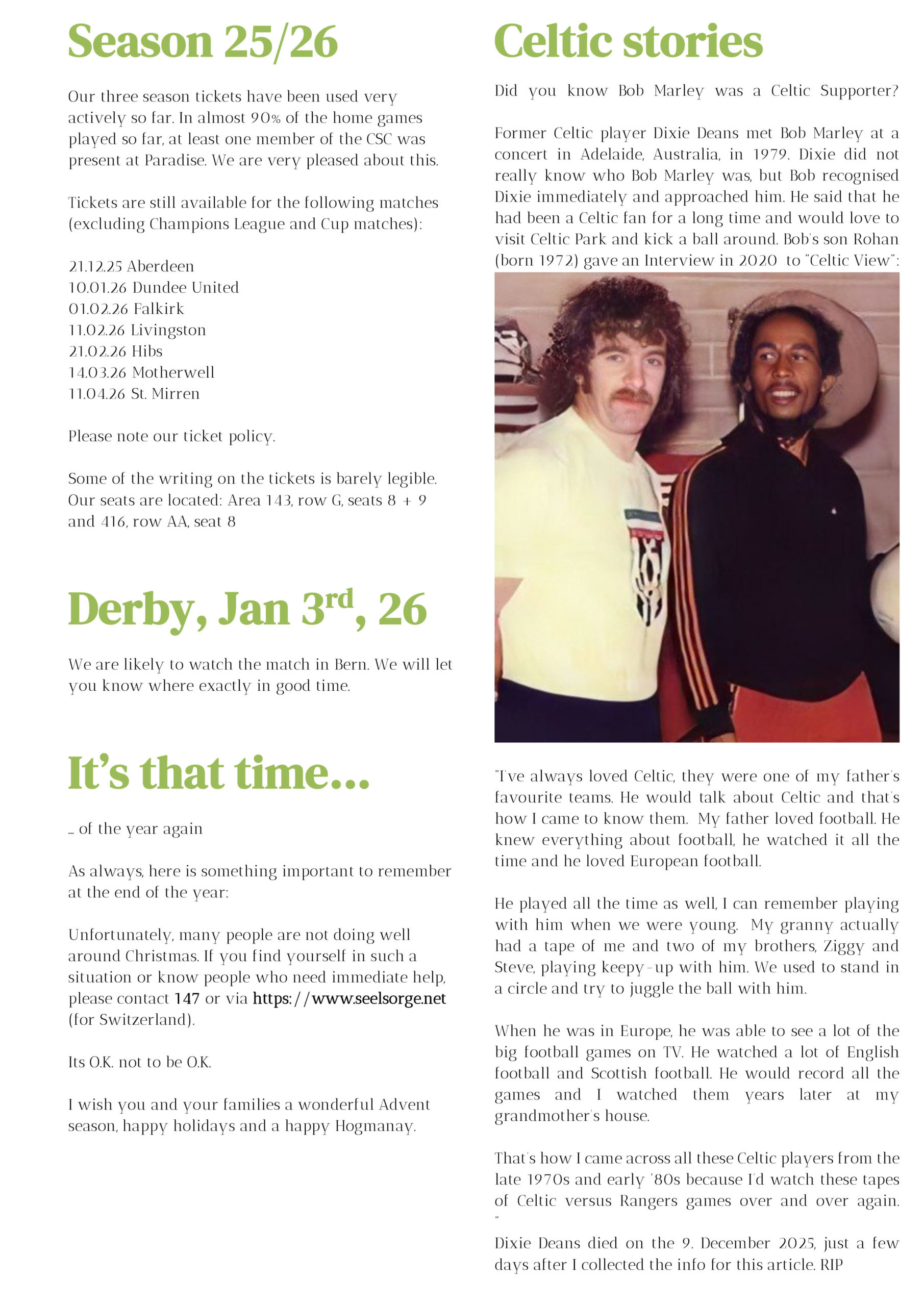 - next Sunday, 7.3.2021 we are offering the unique opportunity to experience the Celtic vs Dundee game with live commentary from Stevie. Perfect for members without Celtic TV, but great fun for those with. Details are in the newsletter. Expected language: German or dialect. Perfectly to learn the most important football terms in our language 🙂