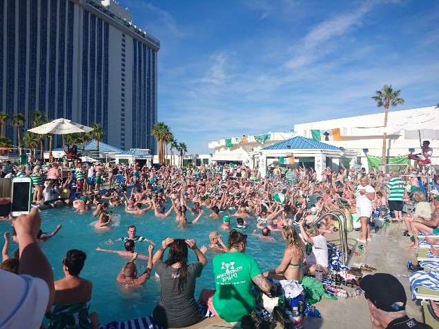 Around 4.000 Celtic fans stayed in the 3.261 rooms of the hotel, and at the “International Bar” there were never less than around 30 Tims (24 hours a day!). Therefore, the Pool Party on Tuesday got really (really!) crowded, as you can imagine. At times, you couldn’t even see the water in the pool and the hotel staff was just not able to keeping up the beer and ice supply for bars in the pool area… Nevertheless, probably almost nobody kept sober. The NAFCSC had one hut at the pool set up as stage for music, so that we could celebrate our Celtic music heritage. Even hotel staff learned a few songs! J It was just incredible! By the way: The water in the pool got never dark blue (as in the film “Grown Ups”), but was probably around 50% beer at the end of the party…